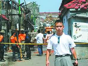 王文輝去年和妻子剛結(jié)婚5天,就奉命去東帝汶維和,一年來,他做夢(mèng)都想著早日和妻子團(tuán)聚。事發(fā)當(dāng)天,王文輝正坐在床邊,突然發(fā)現(xiàn)窗外閃過一道火光,隨即聽到一聲巨響,像是煤氣的爆炸聲!安缓昧,出事了!”王文輝沖到窗前,想看外面到底發(fā)生了什么事。