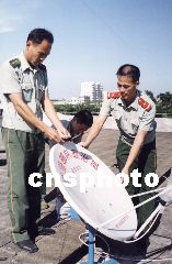 為讓部隊(duì)官兵能夠高質(zhì)量地收看贊頌改革開放偉大成就和十六大的有關(guān)報(bào)道,武警海南總隊(duì)組織文化站的官兵下基層對電視接收設(shè)備進(jìn)行檢修,并給遠(yuǎn)離市區(qū)的單位安裝了衛(wèi)星接收天線。周宏偉 攝
