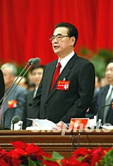中國共產(chǎn)黨第十六次全國代表大會八日在北京人民大會堂開幕,李鵬主持會議。作者:毛建軍