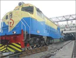 火車駛上粵海鐵1號 渡船與鐵路棧橋?qū)映晒?/b>