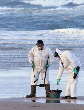 1月4日,沉沒在西班牙西北部海域的“威望”號油輪上泄漏的燃料油已經(jīng)漂到法國海岸,對當?shù)氐穆糜螛I(yè)構(gòu)成嚴重威脅。法國有關當局已抽調(diào)大批工人進行清理,燃料油對海洋生態(tài)造成嚴重污染。