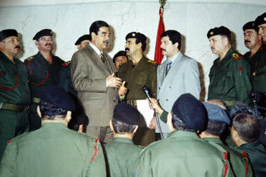 圖:伊總統(tǒng)薩達(dá)姆接見共和國衛(wèi)隊(duì)高級(jí)將領(lǐng)