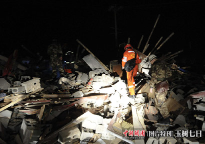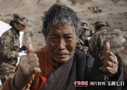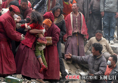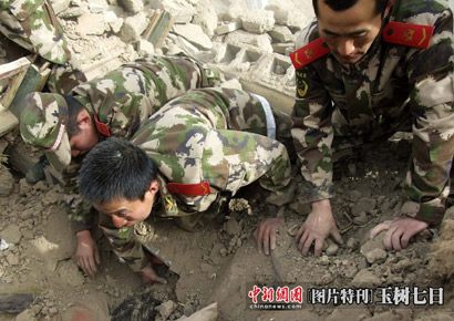 武警戰(zhàn)士在玉樹地震廢墟里救助被困民眾