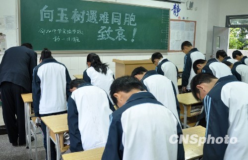 四川廣安師生向玉樹(shù)地震中遇難同胞致哀