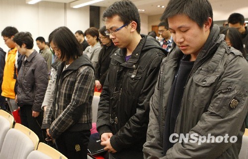 圖:民族大學(xué)師生為玉樹(shù)遇難同胞默哀