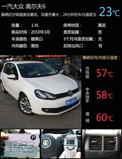 雖然高爾夫6車窗外片加有2.1mm的綠色吸熱玻璃,但是這臺(tái)沒有貼膜的黑內(nèi)高爾夫6車內(nèi)溫度還是在60度左右。開啟空調(diào),出風(fēng)口吐出冷氣的時(shí)間很快,后排出風(fēng)口分擔(dān)了些車內(nèi)后半部分的降溫工作,讓車內(nèi)乘客在短時(shí)間內(nèi)感覺到了舒爽。