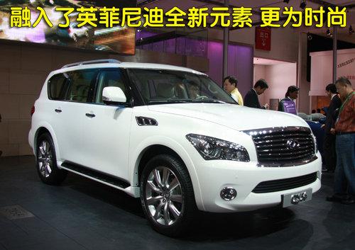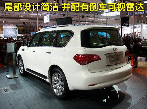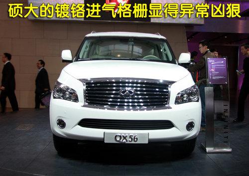 近年來(lái)SUV車型持續(xù)火爆,各廠商陸續(xù)推出新的車型以增加市場(chǎng)競(jìng)爭(zhēng)力。同時(shí)性能強(qiáng)悍,寬大舒適的大型SUV,也得到了一些具有獨(dú)特品位喜歡運(yùn)動(dòng)且資金富裕消費(fèi)者的最愛(ài),因此大型豪華SUV市場(chǎng)也受到了不少消費(fèi)者的關(guān)注。英菲尼迪是日系高端品牌中最具有藝術(shù)氣息的,今年在北京車展上就展出了全新一代的QX56,QX56作為一款7座豪華SUV車型,一經(jīng)推出就立刻受到了的中國(guó)消費(fèi)者的關(guān)注。近日我們從英菲尼迪4S店銷售人員處獲悉到,全新的英菲尼迪QX56將于今年9月份到店,預(yù)計(jì)售價(jià)160萬(wàn)元左右。銷售人員還表示,目前各4S店均已開始接受預(yù)定,訂金10萬(wàn),第一批車主將于10月份提到現(xiàn)車。下面就讓我們回顧一下,在2010北京車展上見到的英菲尼迪QX56。