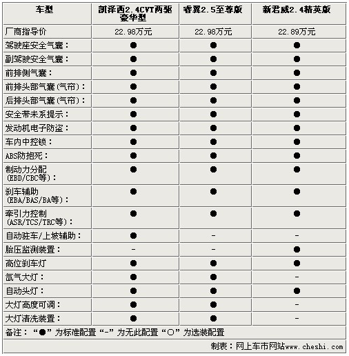 影音系統(tǒng)方面,三款車都為使用者提供了多揚(yáng)聲器的配置,除了AUX/USB接口外,凱澤西還配備了單碟CD,而睿翼則配備了更為便利的6碟CD系統(tǒng),新君威為單碟DVD。通過以上參數(shù)配置方面的比較,對(duì)于三款22.98萬左右的中級(jí)車,配置方面基本打成平手,僅在一些細(xì)節(jié)方面有所出入,不過動(dòng)力方面凱澤西確是實(shí)實(shí)在在的戰(zhàn)勝了睿翼和新君威,幾乎將2.4L引擎的動(dòng)力發(fā)揮到了極致。