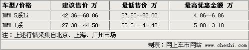 下半年華晨寶馬新款5系Li車型將會上市的消息,讓上半年的老款寶馬5系Li車型價格一一路下降。直至近期國內(nèi)各大城市的BMW老款5系Li車款都有大幅優(yōu)惠,其中北、上、廣三地的優(yōu)惠金額最高已達(dá)6.86萬元。此外BMW 1系在2009年底至2010年初的銷量明顯攀升,這與經(jīng)銷商方面的大膽讓利不無關(guān)系。目前大部分BMW授權(quán)經(jīng)銷商都可以給出1系120AT車款23-24萬元的提車價,可謂“冰爽到底”了。