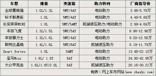 能吸引注意力,外觀之最直觀的一點,也是九款車型最大的一個共同優(yōu)勢所在。若要說它們“虛有其表”,也不能這么簡單的妄作斷言。擁有足夠的動力是小車能在都市里穿梭的前提,很顯然沒有低于1.0L的排量基本上可以保證這一點。轉(zhuǎn)向助力可以是操控更輕巧,三個階層的價位可以滿足不同經(jīng)濟實力人群的購買需要。美麗的女孩,開一輛可愛的小車,游蕩在高樓林立中,好不愜意。