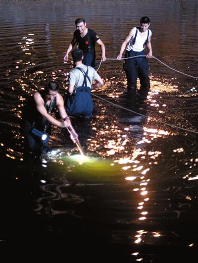 昨天凌晨1點半,經(jīng)過近兩小時搜尋,幾名消防員上岸,表示河中可能無人。
