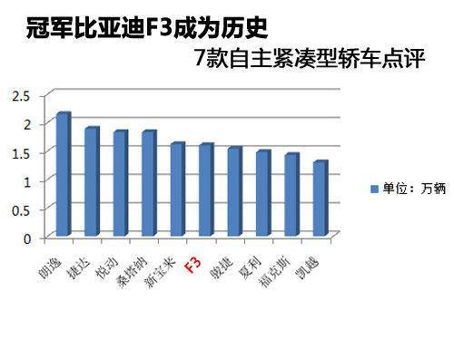 比亞迪F3,比亞迪旗下最為成功的車型,并且穩(wěn)居榜首很長時(shí)間,但是就像開始說的,僅僅一個(gè)月的時(shí)差,讓這款一直穩(wěn)居國內(nèi)緊湊型轎車榜首的車型突然下滑至第六,畢竟就算下滑,跌落個(gè)一兩名的位置還情有可原,但是在其它大多數(shù)品牌并沒有太大的銷量提升的情況下就出現(xiàn)如此狀況,這又說明了什么呢?