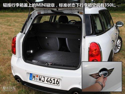 既然廠(chǎng)方說(shuō)Countryman是最實(shí)用的MINI,那么行李箱空間肯定會(huì)成為用戶(hù)仔細(xì)考量的一處。輕按行李箱蓋上的MINI徽章,標(biāo)準(zhǔn)狀態(tài)下行李箱空間有350L,通過(guò)放倒座椅可擴(kuò)容至1170L,在行李箱底部還有一個(gè)隱藏的儲(chǔ)物格。怎么樣,夠用了吧!