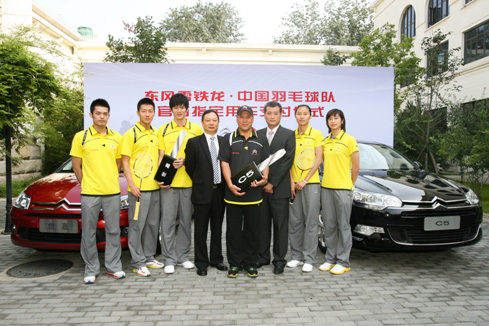 東風(fēng)雪鐵龍副總經(jīng)理魏文清為中國羽毛球隊(duì)交付“榮耀座駕”C5和“冠軍座駕”世嘉