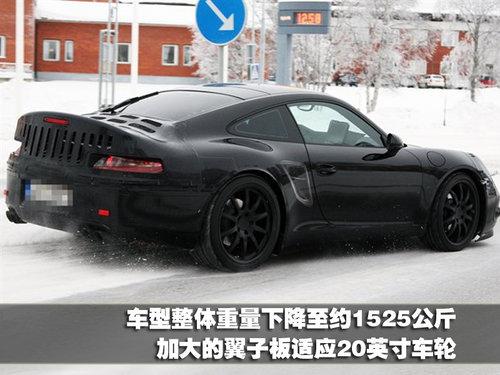 新款911保留了鋼平臺(tái)結(jié)構(gòu),主要由組合的鋼鐵,鋁和塑料復(fù)合材料建造的機(jī)構(gòu)。體重的優(yōu)化使得新款比之前削減了大約45公斤重量,車型整體的重量下降至約一千五百二十五公斤。在車身尺寸方面,新一代911長(zhǎng)度和寬度都有提升,但基本輪廓不會(huì)發(fā)生大幅度的改動(dòng)。外觀最大的改變?cè)谟诩哟蟮囊碜影,目的是為了適應(yīng)20英寸車輪的大小。