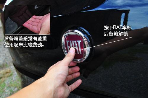 后備箱開啟采用了電磁感應(yīng)按鈕,稍用力按壓FIAT標(biāo)志即可開啟一個(gè)角度,設(shè)計(jì)頗為精巧。后備箱的容積并不算大,擱下一個(gè)旅行背包已經(jīng)占據(jù)了1/3的體積,后排座椅支持4比6放到,雖然不能完全放平,但是也為后備箱提供了更多空間?傊⿶偟暮髠湎鋺(yīng)付日常使用是完全沒有問題的。只是后備箱蓋感覺有些重使用起來稍稍有些費(fèi)勁。