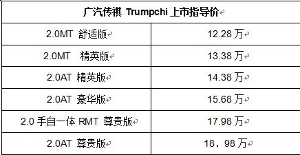 有媒體評(píng)論,廣汽傳祺Trumpchi上市發(fā)布會(huì)無(wú)論是地點(diǎn)的選擇、嘉賓的人數(shù)還是現(xiàn)場(chǎng)氣勢(shì)的營(yíng)造,都創(chuàng)下了業(yè)界的多個(gè)第一,堪稱(chēng)國(guó)內(nèi)有史以來(lái)規(guī)模最宏大的新車(chē)上市儀式。而12.28萬(wàn)——18.98萬(wàn)元極具競(jìng)爭(zhēng)力的定價(jià),輔以完善的“加分服務(wù)”,使得廣汽傳祺Trumpchi一上市便成為中高級(jí)轎車(chē)陣營(yíng)2.0L級(jí)別最具性?xún)r(jià)比優(yōu)勢(shì)的車(chē)型?梢灶A(yù)見(jiàn)的是,依托廣汽集團(tuán)強(qiáng)大的品牌號(hào)召力和品質(zhì)口碑,廣汽傳祺Trumpchi必將一炮而紅,成為中高級(jí)轎車(chē)市場(chǎng)的全新標(biāo)桿。