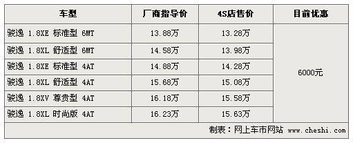 據(jù)4S店銷售人員介紹:目前駿逸無現(xiàn)車,全部需要預(yù)訂,訂車周期為1個月左右。由于駿逸銷量不佳,目前優(yōu)惠幅度達6000元,不送裝飾。