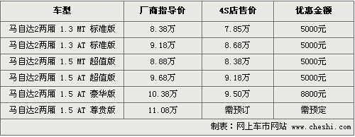 時(shí)尚的外觀,靈動(dòng)的造型,馬自達(dá)2推出以來受到無數(shù)型男型女的追捧,同時(shí)日系車一貫科技含量較高,使馬自達(dá)2成為時(shí)尚人士的數(shù)碼玩具。目前根據(jù)網(wǎng)上車市價(jià)格監(jiān)測系統(tǒng)顯示,馬自達(dá)2的價(jià)格近期出現(xiàn)了一定幅度的松動(dòng),具體車型以及價(jià)格如下: