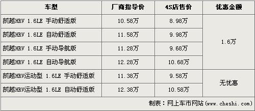 凱越HRV是04年10月上市銷(xiāo)售的,其憑借流暢的外形博得了不少消費(fèi)者的喜愛(ài)。07年10月份,上海通用別克又推出了增加前后包圍套件的運(yùn)動(dòng)版凱越HRV,流暢的外形在前后包圍的裝飾下彰顯運(yùn)動(dòng)。近日根據(jù)網(wǎng)上車(chē)市價(jià)格檢測(cè)系統(tǒng)顯示,別克凱越HRV全系已經(jīng)停產(chǎn),并且店內(nèi)在售現(xiàn)車(chē)優(yōu)惠1.6萬(wàn)元,具體詳情請(qǐng)看下表: