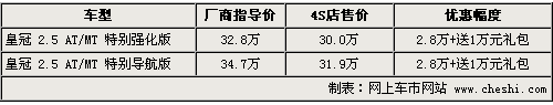 據(jù)4S店銷售人員介紹,目前銷售的皇冠出現(xiàn)了較大幅度的優(yōu)惠,最高可以優(yōu)惠現(xiàn)金2.8萬元,另外可以贈送價值1萬元的禮包。而一直備受關(guān)注的新皇冠據(jù)稱將在年底亮相。全新改款后的皇冠將在3.0排量基礎(chǔ)上推出4.3引擎,同時外觀造型的改變以及內(nèi)飾和配置的全面提升都將為消費者帶來更多的驚喜和期待。