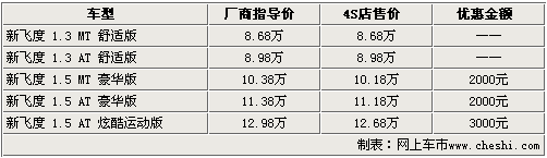 據(jù)廣汽本田4S店銷售人員介紹,飛度目前的優(yōu)惠一直保持在2000元-3000元,其中1.5運動版最高優(yōu)惠3000元,其他車型可優(yōu)惠現(xiàn)金2000元。現(xiàn)車方面1.3L現(xiàn)車較少,其它車型有現(xiàn)車供應(yīng),但部分型號顏色不全,仍需要預(yù)訂,訂金為1千元。