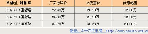 筆者日前走訪北京上海通用雪佛蘭4S店時獲悉,目前科帕奇最高優(yōu)惠達到6萬元,科帕奇的性能體現(xiàn)了美國SUV的風格,大部分時間是在公路上飛馳,能夠擁有一般轎車無法比擬的高度和視野。偶爾想要撒一下歡或者應付一下壞路也不會讓你失望。詳情請見下表: