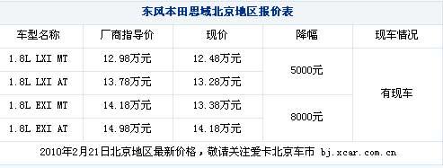 近日,從北京東風Honda經(jīng)銷商處獲悉,目前思域LXI和EXI車型優(yōu)惠分別在5000元和8000元,優(yōu)惠幅度有所縮小。詳情請見下表: