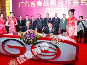 繼重組長(zhǎng)豐、牽手菲亞特之后,廣汽集團(tuán)再次出手,將浙江吉奧收至旗下,雙方昨日在杭州簽下戰(zhàn)略合作協(xié)議。根據(jù)協(xié)議,廣汽集團(tuán)將以貨幣為主出資,吉奧汽車以其汽車產(chǎn)業(yè)相關(guān)資產(chǎn)出資,共同將原吉奧汽車相關(guān)資產(chǎn)整合成為一家廣汽集團(tuán)與吉奧汽車股比為51:49的合資公司。簽約儀式之上,廣汽集團(tuán)副董事長(zhǎng)、總經(jīng)理曾慶洪明確表示:“廣汽集團(tuán)將保留吉奧現(xiàn)有經(jīng)營(yíng)管理層!
