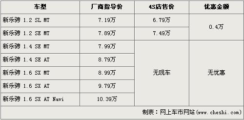 雪佛蘭-新樂騁是上海通用于去年3月份上市的小排量車型,也是運用到雪佛蘭新家族特征的首輛車型。新樂騁全系分為1.2L、1.4L、1.6L三種排量,排量的多選化為喜歡小排量兩廂車型的用戶提供了更豐富的選擇。近日根據(jù)網(wǎng)上車市價格監(jiān)測系統(tǒng)顯示,雪佛蘭新樂騁出現(xiàn)了4000元的優(yōu)惠,具體價格詳情請看下表: