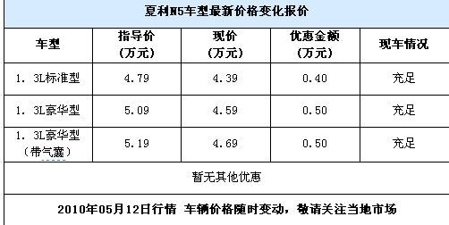 近日,編輯從天津一汽北京中普信4S店解到,夏利N5現(xiàn)車充足,最高優(yōu)惠5000元。詳情見下表: