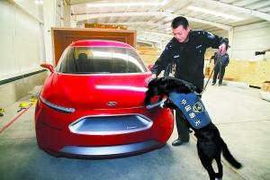 北京國際車展本月25日舉辦,目前空運展品已經(jīng)大部分入境。為防止展品中夾藏違禁品,海關緝毒犬基地派出兩條訓練有素的緝毒犬協(xié)助關員現(xiàn)場查驗。張鵬 唐延智攝