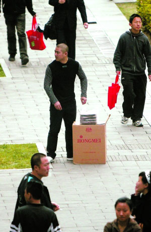 記者26日下午在這里看到,一個男人坐在通道里,手拿計算器,1個多小時內(nèi)陸續(xù)有近30人出入,大家把錢交到男子手中,隨后分批離開。一個操著東北口音的男子說:“我是來幫忙賣盒飯的,中間拿提成。”
