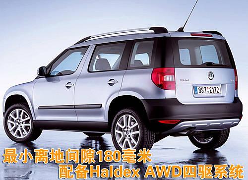 斯柯達Yeti車型內(nèi)部非常的寬敞,同時可以容納較多的行李,使用VarioFlex彈性后座系統(tǒng),行李箱空間可以達到1760升。斯柯達Yeti擁有180毫米的最小離地距離,標準配置為17英寸的輪轂,并且采用了來自瑞典Haldex公司的第四代Haldex AWD四驅系統(tǒng)。