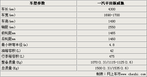 一汽豐田的A0級小車威馳,被豐田汽車公司稱為是“專門為中國設計的全新車型”。豐田新威馳于08年正式推出,主要目標消費群體為80后的年輕人,其“生而簡酷”的特性已在年輕人群中引起極大反響。近日我們從豐田內(nèi)部人士處獲悉到,豐田威馳即將小改款,同時我們在第一時間得到改款后新威馳的圖片和車型參數(shù)。新款威馳在外形設計上將更加硬朗,與家族老大哥凱美瑞有幾分相似,在舒適配置上也會更加豐富,在車身尺寸和動力系統(tǒng)方面與目前銷售車型相同。