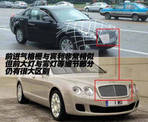 華泰B級(jí)車的車身尺寸足以媲美賓利歐陸飛馳,而且整車的側(cè)面腰線也非常流暢,但與賓利前后線條下墜的樣式還是有不同之處。而且尾部的造型雖然摻雜了一些模仿的元素,但尾燈、霧燈包括輪轂等設(shè)計(jì)都全然不同。