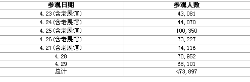 經(jīng)2010北京國際車展秘書處統(tǒng)計(jì),截止到2010年4月29日17:30,本屆北京國際車展新老展館參觀人員數(shù)量如下: