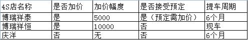 附:部分4S店的加價情況(以下均為普通版高爾夫6的加價幅度,所有加價情況均為銷售人員口頭傳達,可能會發(fā)生變化)