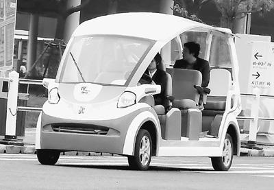 上海世博園內(nèi)運行著太陽能、新能源汽車、LED照明工程等低碳應用項目。圖為燃料電池觀光車正在世博園區(qū)載客運行。