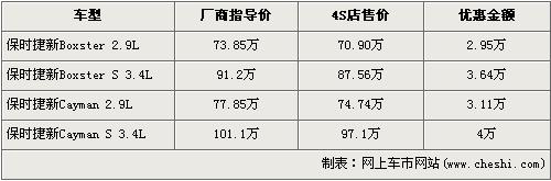 據(jù)北京保時捷4S店銷售人員介紹,由于去年的經(jīng)濟危機席卷全球,以至于全球的經(jīng)濟形勢都不容樂觀。在去年下半年,保時捷的北美以及德國本土銷量都下降了不少,所以在2009年保時捷力爭以價格優(yōu)勢搶占中國的超跑市場。為了表示率先占領中國超跑市場的決心,于近期上市的新Boxster和新Cayman兩款經(jīng)典超跑在上市之際便打出降價牌-全系優(yōu)惠9.6折。經(jīng)折扣轉(zhuǎn)換成現(xiàn)金后,排量同為2.9L的新Boxster和新Cayman售價立即從廠商指導價分別降為了70.90萬元和74.74萬元,而動力更加強勁,排量同為3.4L的新Boxster S和新Cayman S經(jīng)優(yōu)惠后售價也分別降為了87.56萬元和97.1萬元。