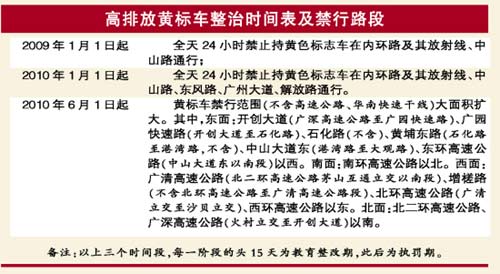按照整治時間表,廣州市估計將有26萬輛黃標(biāo)——高排放或高污染汽車,從2009年1月1日起,全天24小時禁止在內(nèi)環(huán)路及其放射線、中山路通行。