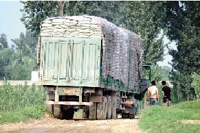 記者從固安大橋出發(fā),驅(qū)車向西行駛七八公里,沿途穿過固安縣東駝村,便是永定河的堤道。一名村民抱怨說,自從封路檢查后,這條路就經(jīng)常過往大車,原本平整的路面也被毀得坑坑洼洼。