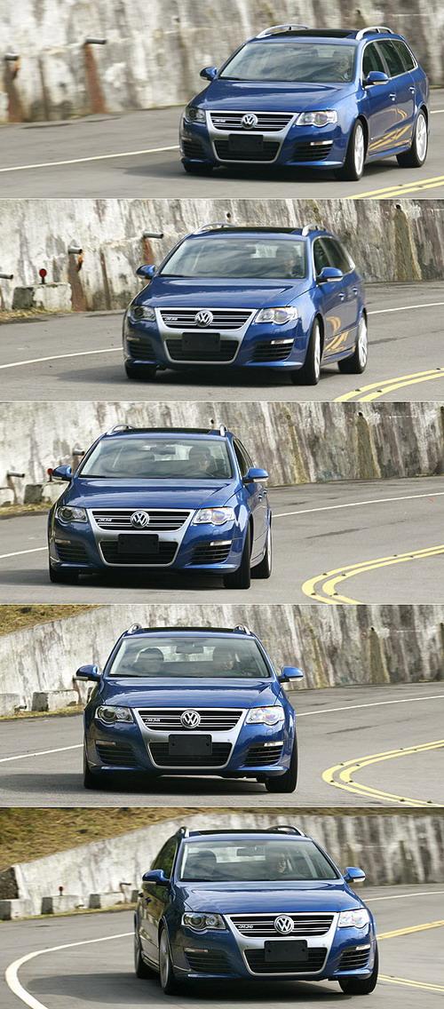 一如原廠官方照片的主打車色,此次所試的R36即采用R家族招牌的靛藍色烤漆。在穩(wěn)重而帶點豪華的造型基調(diào)下,大眾Individual客制化部門以空力套件的方式,為R36營造出截然不同的運動風格。招牌的V字型水箱護罩,依舊是R36車頭的焦點所在。仔細觀察,R36的水箱護罩采用霧面質(zhì)感處理,并采用與R32相同的雙肋樣式;而“R36”專屬銘牌亦鑲嵌于此,點出其獨特的性能身份。