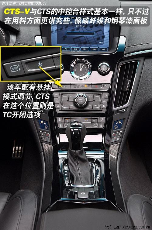 在CTS-V車內(nèi),我看到了不少運(yùn)動(dòng)型或性能車上所具有或沒(méi)有的特點(diǎn),說(shuō)起來(lái)有些繞口,首先談?wù)劰残浴R话闱闆r下,運(yùn)動(dòng)型車內(nèi)都會(huì)用深色為基調(diào)的內(nèi)飾并搭配碳纖維面板,有些車上還會(huì)用白色縫合線與深色高等皮質(zhì)搭配,這樣一來(lái),不僅樣式好看,它所透出的動(dòng)感也是無(wú)法掩蓋的。