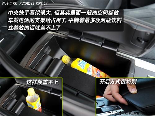 不過(guò)手套箱和扶手箱里面的儲(chǔ)物能力就不敢恭維了,空間都不是很大,手套箱里面還有CD碟倉(cāng),而扶手箱里面有車載電話的支架,所以這兩處空間表現(xiàn)都比較一般。