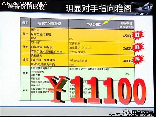 此次上市發(fā)布會上面一汽馬自達將自己的配置和同級別車型進行了對比,公開發(fā)布了同級別售價的車型相比睿翼在配置方面的性價比會高出1.11萬元的口號,并且現(xiàn)場用PPT進行了展示。
