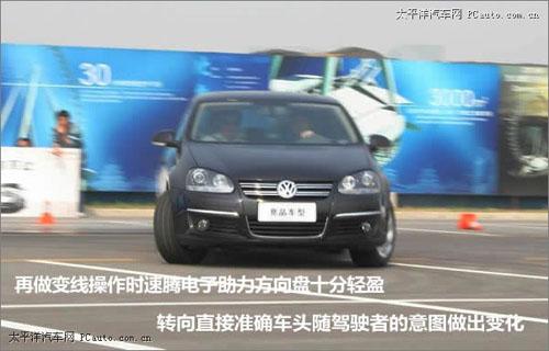 首先我們將速騰加速到80公里/小時(shí),油門(mén)到底,車(chē)猛的竄了出去,再做變線操作時(shí),電子助力方向盤(pán)十分輕盈,轉(zhuǎn)向直接準(zhǔn)確,車(chē)頭隨駕駛者的意圖做出變化,只是在做出太大動(dòng)作時(shí),速騰的轉(zhuǎn)向不足的情況比較嚴(yán)重。在整個(gè)過(guò)程中速騰底盤(pán)表現(xiàn)出深厚的功底,“駕駛者之車(chē)”的美譽(yù)名副其實(shí)。