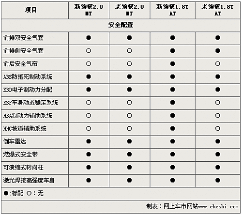 在安全配置方面,新老領(lǐng)馭2.0排量入門車型安全配置完全一致,沒(méi)有任何改變。而新領(lǐng)馭1.8T車型較老款車型增配了前后安全氣簾及ESP車身動(dòng)態(tài)穩(wěn)定系統(tǒng)等安全裝備。由此可見(jiàn),新領(lǐng)馭1.8T車型的安全性能有所提升。