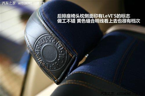 后排座椅的材質(zhì)和前排相同,而且在頭枕上還有LeVI'S的商標(biāo)圖案。比較顯檔次的是座椅上的黃色縫合明線,這上LeVI'S的牛仔褲上被廣泛應(yīng)用,對(duì)這個(gè)品牌熟悉的用戶對(duì)此一定會(huì)感到很親切。