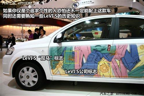這款樂風(fēng)的新車型是由通用雪佛蘭和國(guó)際知名牛仔褲制造商LeVI'S合力打造的一款限量版車型,白色的車身成了畫板,而車門上的大量牛仔褲圖案就像躍然紙上的涂鴉,相信這款車無論開到哪里都必然會(huì)引起路人的注意。而對(duì)于LeVI'S歷史有所了解的人一定知道,前門上的“雙馬”標(biāo)志是最早出現(xiàn)在1886年的牛仔褲商標(biāo),也是現(xiàn)今歷史最悠久的服飾商標(biāo)之一?梢哉f它的出現(xiàn)不僅僅是為了體現(xiàn)個(gè)性,更是一種文化的展示。